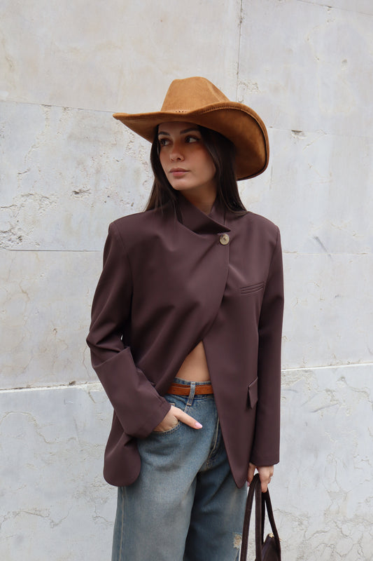 BLAZER ALLACCIATURA ASSIMMETRICA MORO