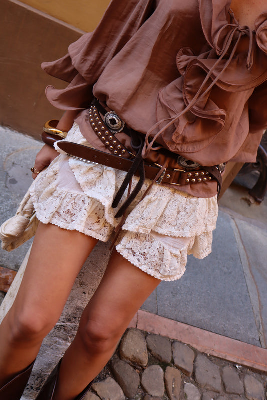 PANTA GONNA IN PIZZO CON BALZE
