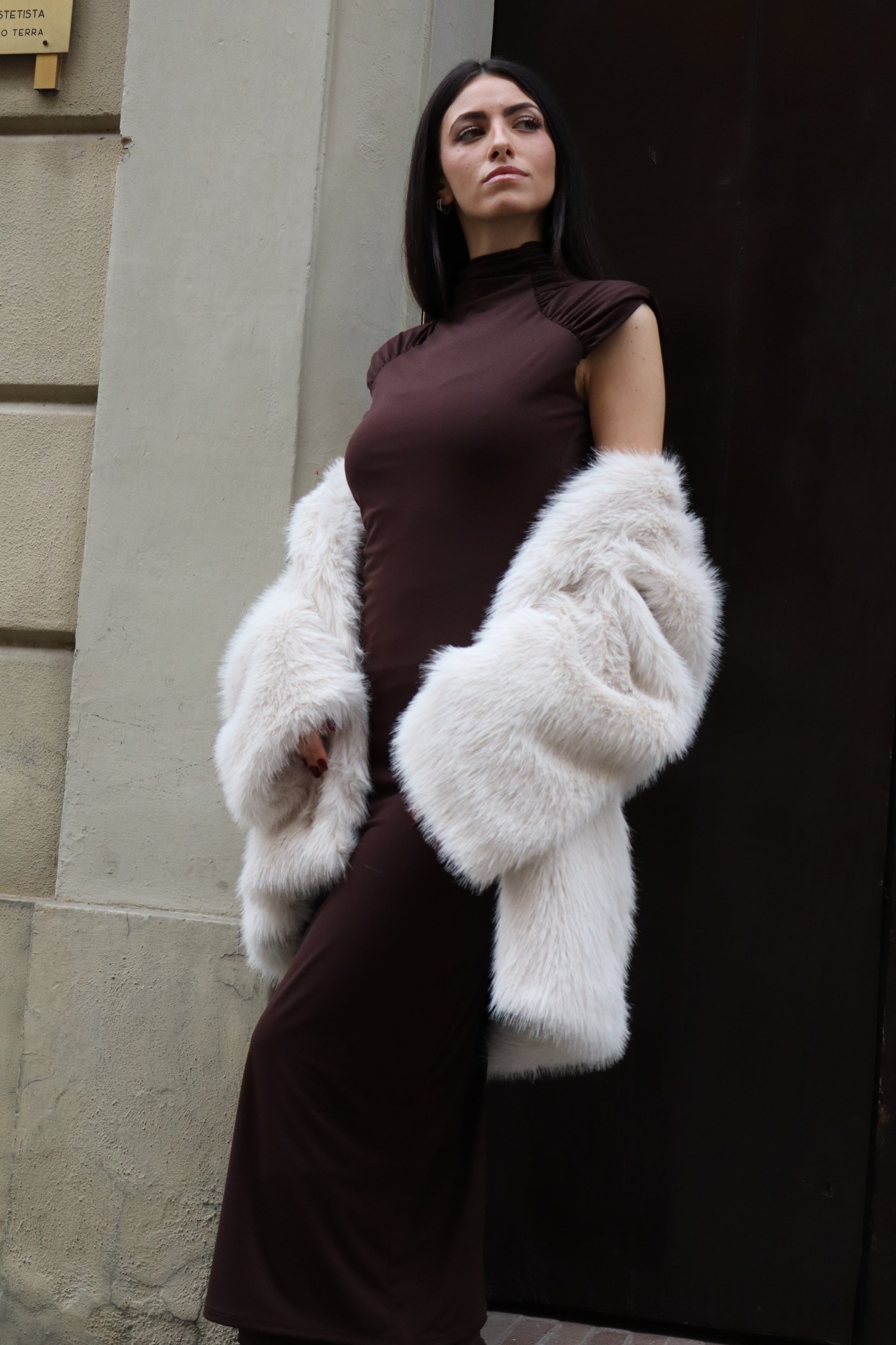 ABITO TUBINO LUNGO CON SPALLE IMPOTTITE
